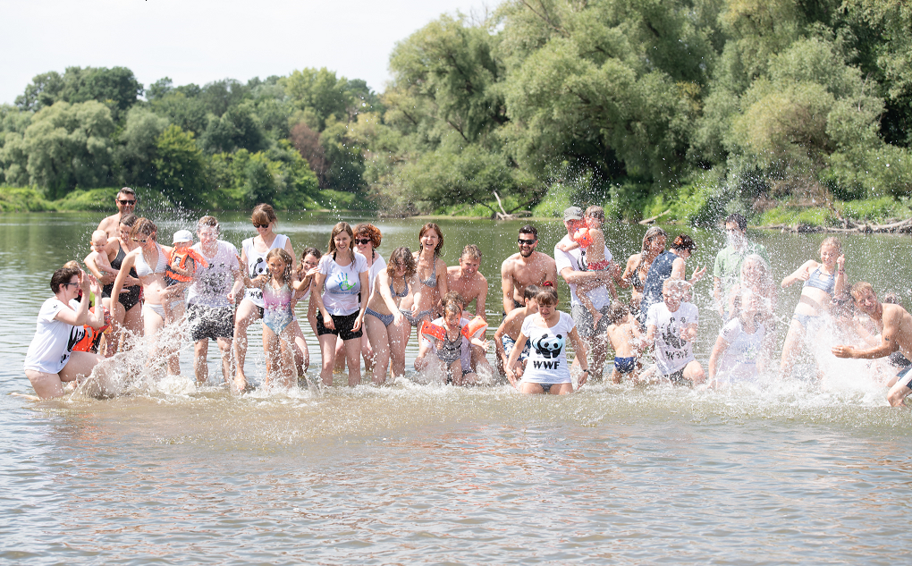 Der WWF setzt sich mit dem Big Jump dafür ein, dass die Anforderungen der EU-Wasserrahmenrichtlinie eingehalten werden. Im Rahmen des großen Life+ Projektes „Untere Marchauen“ zeigt der WWF gemeinsam mit viadonau und dem Landesfischereiverband Niederösterreich vor, wie es gehen kann: Aktuell werden an der March Revitalisierungen durchgeführt, wodurch der Fluss mehr Platz erhält, ökologisch aufgewertet wird und mehr Lebensraum für Fische, Amphibien und Co. bietet. Rund um den Big Jump am 8. Juli konnten BesucherInnen das Vorbildprojekt besuchen, Exkursionen zu den Störchen sowie den seltenen Konik-Pferden in die Au unternehmen und malerische Flussfahrten auf der March genießen. Höhepunkt war der gemeinsame Sprung in den Fluss um 14.00 Uhr, zeitgleich mit tausenden anderen Flüsse-Fans in ganz Europa.