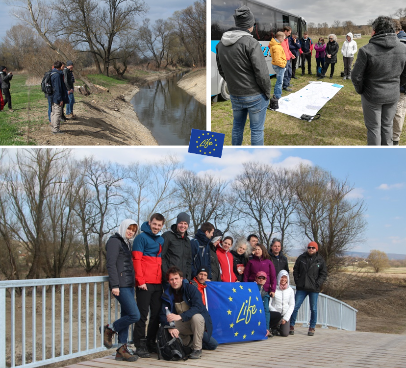 Bei sommerlichen Wetter startete die Veranstaltung beim Storchenhaus in Marchegg mit einer Projektvorstellung und Übersicht über die Maßnahmen. Anschließend wurden die neuen Seitenarme „Wolfsseeinsel“, „Alter Zipf“ und der neue Mündungslauf des Stempfelbachs besichtigt.