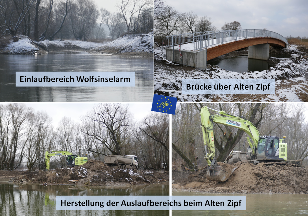 Sobald die Witterung es zulässt werden die Bauarbeiten fortgesetzt. D.h. die Fertigstellung der Seitenarme bei der Wolfsinsel, dem Alten Zipf und im Mündungsbereich. Auch die Maßnahmen im Bereich der Maritz sollen dann starten!
